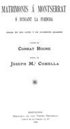 "Matrimonis a Montserrat o Buscant la perduda: Anada en dos actes i en..." de Conrad Roure és una obra còmica catalana escrita a finals del segle XIX. Ambientada durant una animada excursió al monestir de Montserrat, se centra en dos recent casats que no coincideixen —Bonifaci amb la jove Càndida i el jove Martí amb la Pona, la gran— i en Miquel, un pagès que busca ansiosament la seva dona Roseta. El to és musical i juganer, amb cors, danses i una sàtira suau d'excursionistes i funcionaris de poca monta, mentre la gelosia i el flirteig provoquen friccions còmiques. L'inici de l'obra comença en un vagó de tren ple de gom a gom amb destinació a Montserrat, on els viatgers canten, bromegen i coneixem les parelles, el jovial Narcís i Miquel, que admet que ha "perdut" la Roseta. Al monestir, l'allotjament s'organitza un al costat de l'altre, la gelosia de la Pona s'encén i, a la llum de la lluna a l'ermita dels Apòstols, un maldestre ajuntament del Bruch proporciona un toc còmic abans que tothom balli una sardana. A les escenes del restaurant, els excursionistes brinden amb vi local mentre un fotògraf s'esforça per fer un retrat de grup; la Càndida interpreta un vals, la Pona assetja en Martí i en Miquel arruïna una foto cridant "Roseta!" mentre continua buscant. Pels camins de la Cova i cap a Sant Jeroni, un cor de mariners canta en un interludi panoràmic, i en Narcís finalment porta a en Miquel notícies tranquil·litzadores a través del missatge d'un comerciant que la Roseta està bé, mentre el grup es prepara per continuar la seva excursió, alguns amb rucs, altres a peu. (Aquest és un resum generat automàticament.)